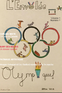 Nous vous invitons à lire les quatre numéros de l’Envolée olympique rédigés par une dizaine d’élèves. Les talents journalistiques de ces élèves vous surprendront ! Félicitations à Laurianne Allard, Jérémy Brunelle, Édouard Gauthier, Jade Hébert, Kendra Jebamalai, Jade Mathieu-Yelle, Alexandre Miron, Julie-Anne Simard, Daphnée Tanguay et à leur enseignant M