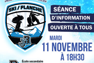 Une soirée d’information en vue de l’inscription au programme Ski/Planche 2026-2027 se tiendra le 11 novembre 2025 à 18h30, à la bibliothèque de l’école secondaire Jean-Jacques-Rousseau à Boisbriand.           La période d’inscription au lieu du 11 novembre 2025 au 16 janvier 2026. La pige s’effectuera au conseil d’établissement du 22 janvier prochain. Les […]